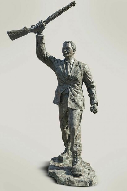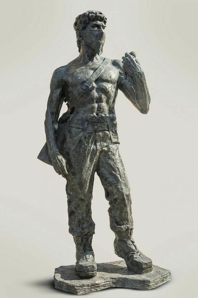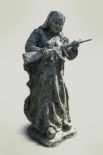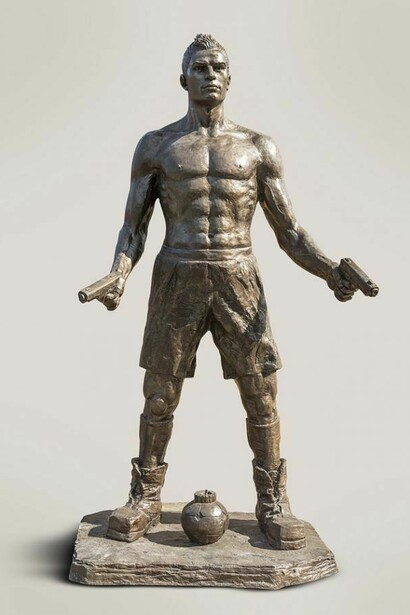 Ahmed Al- Bahrani's (Babylon, Iraq b. 1965) occupies a distinguished position among the work of Arab contemporary sculptors. The figurative oeuvre that will be presented in this show has an overpowering aesthetical discourse with a humanistic output of universal implication; this new series stands against the war and gun violence, making a breakthrough in contemporary art. His realistic images are portraits of political, religious and pop personalities, among others, carrying all type of armaments.