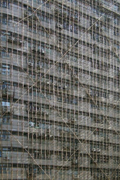 This exhibition brings together large scale photographs in which the vision of Hong Kong is airless and groundless, inhabiting the abstract mid-ground perspective where endless architectural forms appear as patterns, sequences of shape and colour disconnected from realistic perspective. Colour and form seem to extend indefinitely, mirroring the disorientating spatial experience of the city itself.