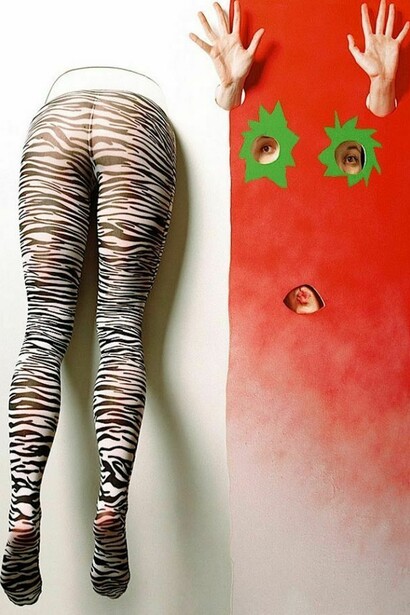 Accompanied by a subtle touch of torture and malaise, these innocuous objects by Michael Mahalchick - Jeans (2013), Shirt (2013) and Sweater (2013) - play with the notion of private and public persona. Even though his transformation is impermanent, the - in the artist’s words - “magical objects” represent a battleground between who we are versus who we think we are. In Nadja Verena Marcin’s photographic work, Animals (2013) hunt us like creatures from the dawn: staring fresh awake, hungrily searching or shyly amused in cardinal points away from our horizon. They modestly share their non verbal existence apart from the weight of names, numbers, words and codes, roles and models. Cave painting as the origin of painting is literally deformed via body parts reaching through the surface of imagination as quintessential emotionalist’s escape from human reality.