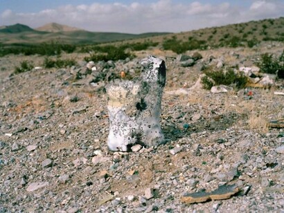 The pair of white sneakers placed into the existing architecture is part of a larger body entitled Things (2013), by Shadi Harouni, where everyday objects (watermelons, a drum, a porcelain duck, etc) push into the lost spaces inside of walls. The objects seek spatial negotiation in circumstances where power has forbidden their existence. Bust (2013) evokes the sight of a superhero’s body, vest or knight’s armor. It is part of an ongoing photo series by Alexa Hoyer exploring homemade gun targets at illegal shooting ranges in the Nevada desert. Decimated by firepower and bullet holes, the objects begin to lose their shape, volume, and surface - a residue of identity gradually dissolving into the desert landscape. What is left are disintegrated artifacts in ghostly appearance: a "totem" of emotional abjection, letdown and the forth-on pursuit of inner faith and happiness.