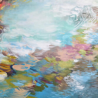 Chris Dolan lived and exhibited for many years in France before settling in Atlanta over twenty years ago. She now divides her time between her studios in Savannah and St. Miguel de Allende in the Bajio mountains of central Mexico. Her series, “Convergences,” was born in response to the 2020 Covid pandemic. Beautifully gestural, Dolan’s paintings defy categorization or narrative but suggest converging mountain ranges or roiling seas. Like Carl Linstrum, she employs complex and masterly techniques to convey her imagery.