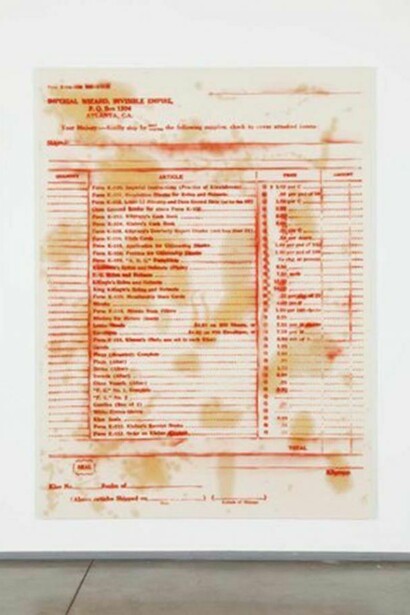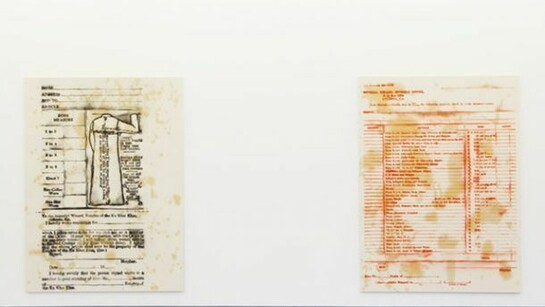 David Ratcliff’s process is always appropriative: he gathers visuals (often drawings or texts) from a wide variety of media, constructs large hand-made stencils and then spray-paints the collaged images onto canvases. In his latest body of paintings, the artist turns his attention exclusively to the Ku Klux Klan. These works take as both their form and their subject the official documents of the organization: incident reports, order forms, meeting minutes, etc.