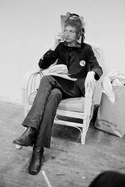 - Judy Linn, Laundrobag (Patti as Bob Dylan), early 1970s; gelatin silver print; paper size: 24 x 20”; ed. 5. Courtesy of Feature Inc.