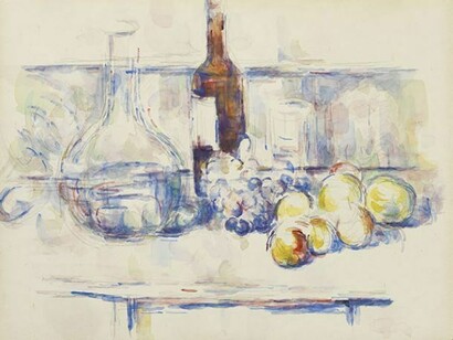 - Paul Cézanne (1839–1906), Still Life with Carafe, Bottle, and Fruit, 1906, Watercolour and soft graphite on pale buff wove paper, 48 x 62.5 cm, © The Henry and Rose Pearlman Collection, Photography by Bruce M. White