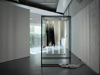 - Katya Sivers, Towards Victoria or Sloane Square, 2013, Metal frame, lamps, paper, clothes , 210 × 130 × 20 сm, Courtesy the artist and GRAD