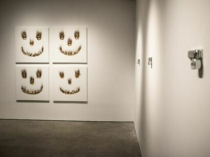 Ruby Anemic's work blurs the line between traditional artwork and the unexpected by presenting a slew of materials within the confines of the exhibition. Neon sculptures are juxtaposed with locks and machetes; even canvas, perhaps the most orthodox medium of all, is transformed into something revolutionary by being burned into an image in lieu of paint.