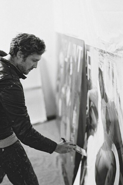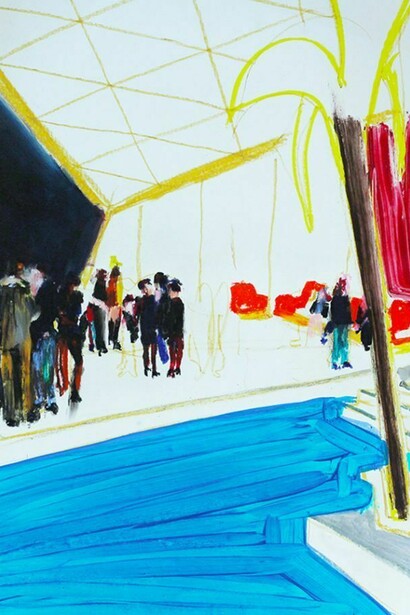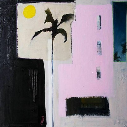 Highlights of the show include a reappropriated drawing of a tropical pattern, created 20 years ago when Moon was yearning to travel, which has now been incorporated into his striking interpretation of American iconography. In amongst the larger pieces, there is an array of atypical American landscapes, Art Deco architecture, and townscapes; all carried out in trademark re-worked, re-painted strokes. The culmination of the show takes the form of a reinvention of all the works, allowing the trip to come full circle – a dreamlike moodboard of his road trip.