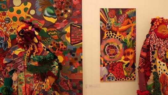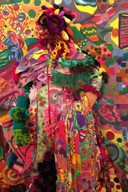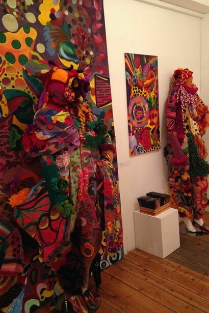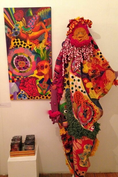 Anna Cortada combines the ideas of dreams and the social, political and economical chaos that surrounds us into this surreal series presented in Other Worlds. The physical creation of the Social Fashion Monsters and the transformation from paintings to outfits happens the following way: the paintings become outfits because they are disassembled and the painted fabric acquires the shape and the patrons of the monsters. The painted fabric of the paintings therefore becomes alive and transforms into monsters.