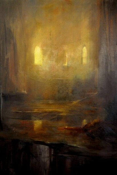 Speaking of his work Wood-Evans claims 'the paintings become intense labours of love. I enjoy learning everything I can from the images I'm working from. But I have to get to a point where I start taking risks. I have to get close to losing control and obliterating the whole thing - then something interesting can happen'. In so doing he creates resonant, distorted echoes and impressions of a past that is re-contextualised by the fading grandeur of history, giving the resulting work a distinctly contemporary feel.
