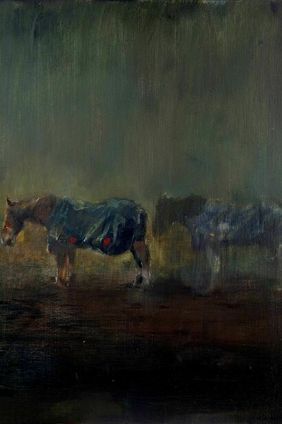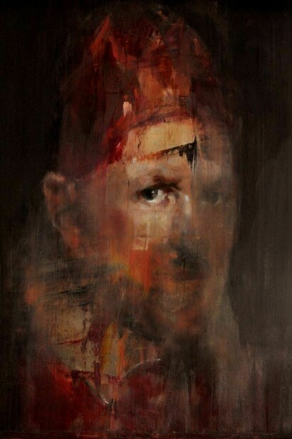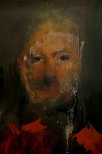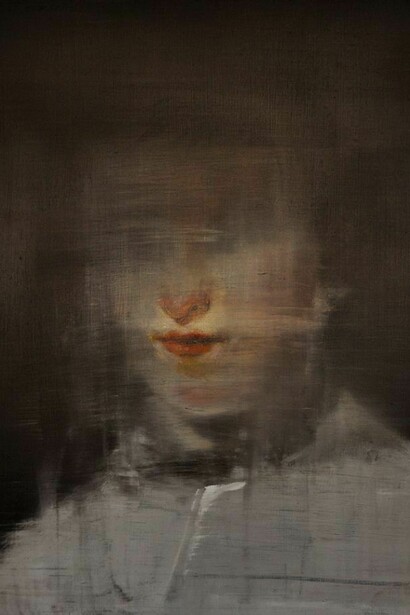 Taking inspiration from the works of Baroque Old Masters such as Diego Velázquez, Sir Thomas Lawrence and George Stubbs, Wood-Evans’ dramatic use of light, whilst echoing the sense of their ‘Old Mastery’, also unsettles it. Evoking faded memories and spectres of a past time, this collection of oil paintings depicts disintegrating and dissolving moments. His powerful use of light emerges from a loose and instinctive use of paint, where bold brush strokes, dripping oils and scored surfaces sit cheek by jowl with fine, delicate detail, luminous skin and intense, rich layers of colour. Eyes, heads or limbs are scraped away or deformed. Traces and marks remain visible in the paint as it is built up leaving the trail and record of those traces behind them. Classical colour pallets with warm, earthy colours are a relatively new feature in Wood-Evans' work, marking a divergence from the deep blues and purples of previous collections.