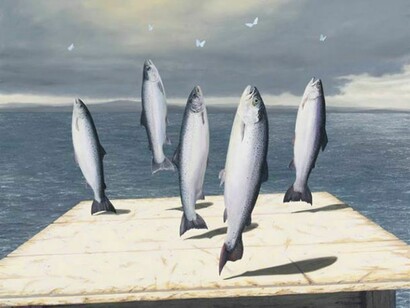 We are delighted to be holding Gordon Mitchell’s fourth exhibition at Portland Gallery. Flying fish, levitation or a ptarmigan skiing on a saucer - welcome to the world of Gordon Mitchell, where it seems, anything really is possible.