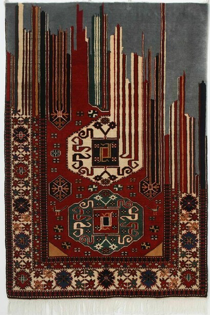 For Azerbaijan-born Faig Ahmed, it is the artistic qualities of Azeri traditional carpets that he explores, dissembling their conventional structure to randomly rearrange the resulting components into sculptural forms. The neat geometry of an Oriental design is thrown into disarray – colours either become a muddle of static, or appear to bleed off the rug, pushing to shoot out of its edges. “The carpet is an icon of Eastern tradition,” he explains. “It is canonical and has visual boundaries – my art is directed towards transforming these boundaries beyond any recognition. These carpets were more than simply visual patterns, they held a certain language and told stories. This tradition has fallen by the wayside, and in deconstructing and reconstructing them, in a way, I am creating new stories.” Indeed, Ahmed examines the way in which tradition plays an important role within society and creates a self-regulating system. However, with the nature of today’s fast-paced world and the reach of global modern culture, traditions and their ‘non-written rules’ often find themselves adapting rapidly. He destroys traditional stereotypes and creates new modern boundaries – the new, contemporary, sculptural form echoes the ways in which man can adapt to new technologies and influences, yet retain his intrinsic core values and cultural heritage without falling into dogma. “I was in search of something really impregnable,” he says. “These carpets reflect my internal conflicts and my will to be free, to shake tradition and transcend its boundaries.”