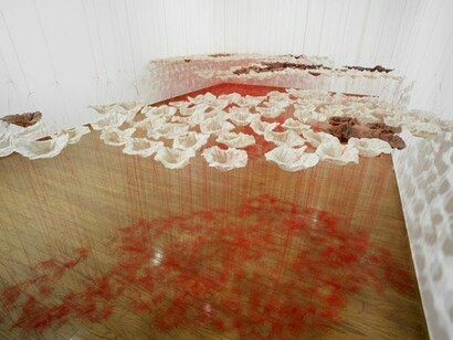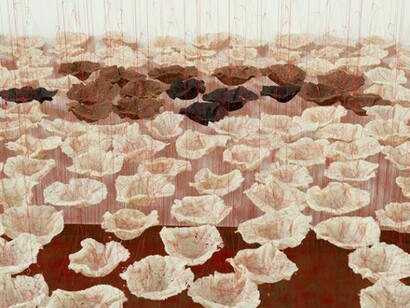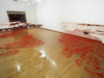 The Everson Biennial returns in 2014 with the Edge of Art Series. The first artist featured is Mary Giehl. Known for her innovation with both materials and concepts, Giehl turns her focus to world hunger in this installation. The sculptural bowls are made from rice and water, the food that so much of the world relies on for nourishment. The bowls are suspended from a world map, which illustrates globally the areas where hunger is greatest and populations rely on rice to live.