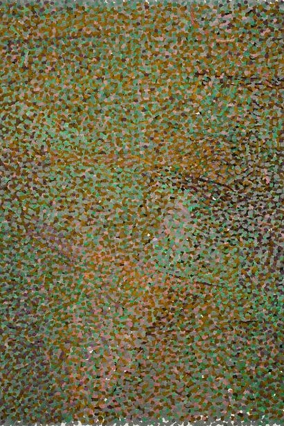 Glenn Goldberg studied at Queens College and the New York Studio School, and teaches at Queens College and Cooper Union. An interview between Goldberg and Samet was one of the original inspirations for this show. In it, Goldberg describes his transition from wrestling with form and radical erasure to leaving visible a repetitive and additive process. Dots are accrued as form and image is constructed: often symbolic, iconic representations of birds, trees, flowers, and animals.