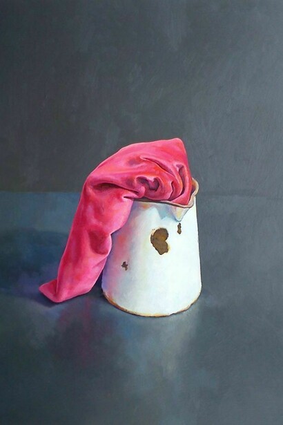 Ralph added: “Each of his compositions is meticulously and beautifully painted. The objects are mundane and easily named: red coat, dented bucket, blue velvet, and yet they remain closed, mysterious and ambiguous.”