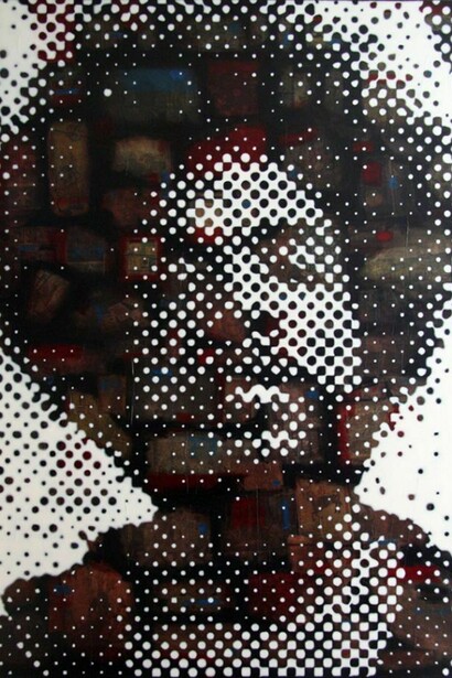 - Brian Batt, Questlove, oil on collaged canvas, 60 x 48 inches