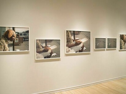 In certain works on view, sequential imagery serves as a mode of record and study. Rubbing Piece, 1970, for example, documents the progression of an hour-long live performance in which Vito Acconci develops a self-inflicted sore on his forearm, while Peter Hujar's Nude Self-Portrait Series, 1966 captures the rhythmic energy of the artist dancing in four frames. In Red Building in Forest, 1974-2004, William Christenberry chronicles the physical transformation of a single building in his native Hale County, Alabama over the course of 30 years and 20 images, and Hiroshi Sugimoto depicts the same body of water at three different times of day in Tyrrhenian Sea, Mount Polo, 1993.