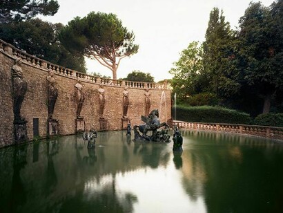 These new “Italian Pictures,” consisting of large format photographic tableaux of formal gardens, aqueducts, and fountains, were photographed in and around Rome last year.