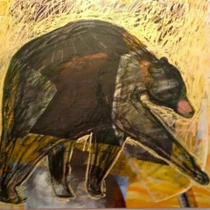 An unbridled horse towers over a house; a bear lumbers through a vague unnatural landscape; a child and large bird nestle with one another: animal imagery suggests passions or instincts often subdued by our social mores. In Domesticated, Karen Gibbons' fourth solo exhibit at 440 Gallery, these images dominate her paintings and collages, subtly provoking the tension between the tame, contained aspects of our culture and the natural animal impulses of the individual. Gibbons' work recalls aspects of both Twombly and Chagall; as here she uses animal imagery to create an emotional narrative about self-transformation. Domesticated will be exhibited from May 8 through June 8, 2014, with an opening reception on Friday, May 9, from 6:00 to 9:00 pm. Several events related to the exhibition are planned, including a hands-on workshop for children.