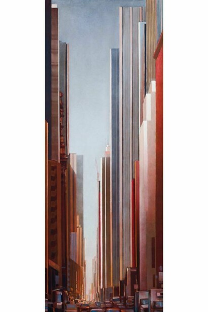- Mark Innerst, Midtown, 2013, Oil on board in the artist's handmade frame, 36 x 14 inches (board); 42 x 19 1/2 inches (frame)