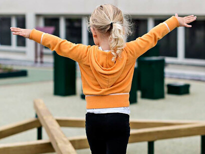 Climb to the top of the gigantic climbing web. This contains many geometric shapes, the strongest of which is the triangle.