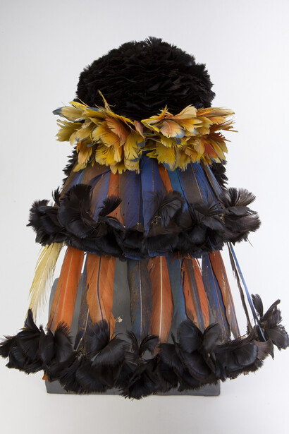 Some of the pieces have not been on display for over a hundred years. These include ritual barkcloth fabrics from the Northwest Amazonia; ceramic, bottle gourds and other objects of the Caduveo Indians from the Brazil-Paraguay border that demonstrate a peculiar decorative style; Peruvian wooden beakers of the mid–19th century; a shaman costume and ritual objects of the Western Mexico Indians; Shuar and Munduruku trophy heads.