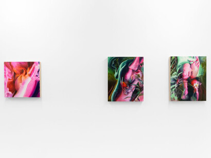 Drawing inspiration from the lush gardens surrounding his home on the North Fork of Long Island, Raenbeau creates a euphoric fantasm of human lovers, verdant vegetation, and often a mysterious sense of intrigue. Taking en plein air painting to queer new realms, Raenbeau joyfully explores analogies between the tending of human relationships to a care of the land.