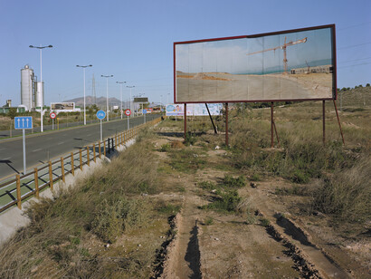 Often straying from the conventional tropes of Romanticism, the landscapes presented in this exhibition focus on the Mediterranean as a place that visually articulates concerns of memory, conflict, colonisation, migration, emptiness and expanse. From Corinne Silva’s Moroccan-within- Spanish wastelands in Imported Landscapes (2010), to Paola Yacoub’s invisible remnants of the Lebanese Civil War in Elegiac Landscapes (2001), Ursula Schulz-Dornburg’s photographs of Syria (2010) and Jananne Al Ani’s stills from her aerial film Shadow Sites II (2011), the works evoke layers of imperialism and history, alongside prescient ruin and destruction. In video works by Noor Abed and Halida Boughriet, the picturesque evaporates, as questions of economic and political migration surface through human narratives of movement. These ‘moving photographs’, like their still counterparts, explore political inequalities between the Global North and the Global South.