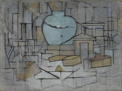 Piet Mondrian (1872-1944), born in Amersfoort in the Netherlands, is a name from which abstraction in visual art, which had a strong influence on the imagery of both Miró and Calder, is inseparable. He was a founding member of the De Stijl movement in 1917, and one of the leading exponents and theorists of abstraction of the first half of the 20th century. Both Solomon and Peggy Guggenheim acquired works that chart his development from figuration to pure abstraction. Mondrian shared the idea of a spiritual and metaphysical basis for artistic creation with Kandinsky, and pursued the construction of a language that translates subjective lyrical expression onto the grid of a cosmic order. He challenged himself to render visible the relationship between individual freedom and the powerful resolve of the universe; in doing so he gave expression to a personalized, ‘neoplastic’, abstract style in which figuration is reduced to vertical and horizontal lines evoking the fundamental natural order. Inserted in the grid are blocks of the primary colors—blue, yellow and red. What emerges is a pictorial world that is both rigid and without limits, from the image to the dynamics of the universe, from the micro to the macrocosm. Mondrian passed his life in Holland, Paris, London, and New York, where he moved in 1940 to join the group of American abstract artists and where the rhythms of the city had a strong impact on his final works. Peggy Guggenheim befriended Mondrian in England in 1938 and he was to remain a member of her circle until his death in 1944. In 1971, the Solomon R. Guggenheim Museum in New York organized an important retrospective exhibition to celebrate the centenary of his birth, confirming the pivotal role he played in the history of Abstraction.