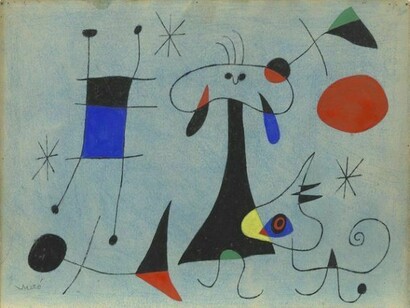 Joan Miró (1893-1983), born in Barcelona, Spain, was a founding member of Surrealism. He was defined by André Breton - leader and originator of the movement - as “the most surrealist of us all,” while for William S. Rubin he was “unquestionably the finest painter to have participated in Surrealism.” From 1924 to 1929 he was the principle exponent of the symbolic tendency in Surrealism that developed imagery of stylized, suspended, often abstract marks and formations that nonetheless evoke their origin in reality around us. He himself remarked: “For me form is never something abstract; it is always a sign of something. It is always a man, a bird, or something else. For me, painting is never form for form’s sake.” In 1942 paintings by Miró were exhibited in Peggy Guggenheim’s New York gallery, Art of This Century, in the debut presentation of her recently formed collection of European contemporary art, alongside works by Surrealist artists such as Salvador Dalí, Max Ernst, and René Magritte.