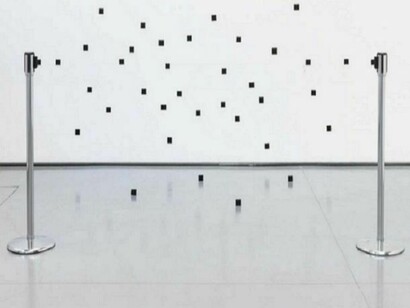“Lo construido” se ve generalmente como algo existente, tangible, que tiene determinados límites espaciales y temporales, en oposición con la condición de proyecto, por esencia transitoria e inestable. El ser construido puede marcar también un estado diferenciador, que permite separar mundo real y mundo imaginario. Sin embargo, en Right Constructions, el artista parece sugerir que lo que tiene materialidad y sigue unas reglas concretas de confección y montaje no siempre es autentico, ni siquiera necesario. Para comprobar esta hipótesis y poner la relación construido/proyectado a prueba, Eškinja introduce distintas tipologías de construcción y de materialidad. Las fotografías e instalaciones concebidas para la exposición juegan con los planos, las dimensiones y perspectivas, testando la plasticidad de las superficies y las propiedades arquitectónicas de materiales como el papel, la luz, o incluso de los clásicos postes separadores que se encuentran en aeropuertos y otros espacios públicos y que también condicionan el espacio construido.