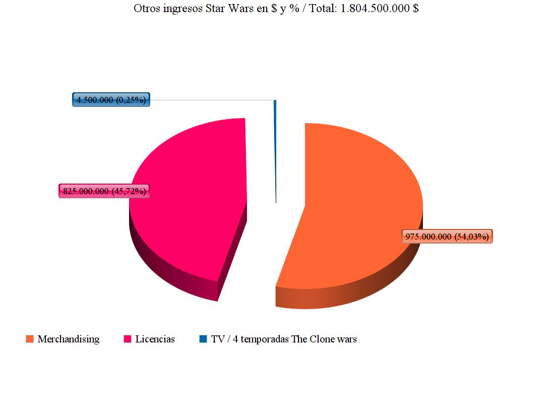 A Statistic Brain le gustar poner números a las cosas y, entre cientos de estadísticas de lo más variopinto, tienen tiempo para Star Wars. En su web, puede encontrarse una página actualizada[2] con el dinero que ha generado Star Wars y sus ubicuas líneas de negocio a lo largo de las décadas.