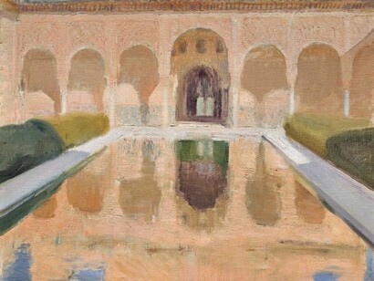 Sin embargo, la verdadera inspiración de Sorolla en Andalucía son, sobre todo, los patios y los jardines árabes de La Alhambra de Granada y del Alcázar de Sevilla, como demuestran la extraordinaria seria de cuadros que el artista dedica a estos temas en el arco de un decenio, restituyendo así todo el encanto de aquellos lugares apartados y solemnes, que habían también ejercido una profunda influencia en la poesía y en la música española de la época. En estas composiciones, donde la presencia humana está desterrada, las arquitecturas vegetales, los mármoles, las cerámicas, las fuentes, la luz y los colores dan vida a una polifonía sensorial rica de sugestiones. El pincel del artista se detiene sobre los reflejos del agua, sobre la luz que disuelve las geometrías arquitectónicas y sobre el mosaico cromático de los jardines, protagonistas de una pintura que hace uso un lenguaje cada vez más puro y refinado.