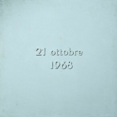 - Alighiero Boetti, 21 ottobre 1968, 1968, industrial enamel on wood and cork, 82 x 82 x 3 cm, Courtesy Tornabuoni Art