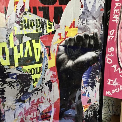 Mais Aurélien Hild ne s’arrête pas là. Il exploite également l’espace urbain avec ses œuvres issues d’affiches récupérées et métamorphosées. Par un travail d’arrachage et de collage, il leur offre une seconde vie, une résurgence artistique où se mêlent hasard et intention.