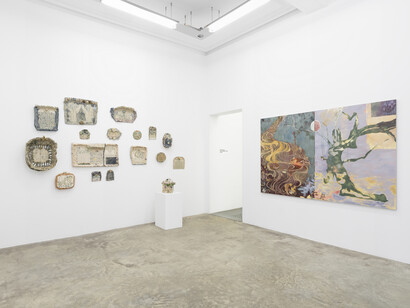 Les céramiques rituelles de Chiara Camoni sont chargées d’une sensi- bilité animale qui dissout les frontières entre objet et esprit. Dans cette exposition, deux immenses sculptures figurent un portail physique entre le terrestre et l’invisible.