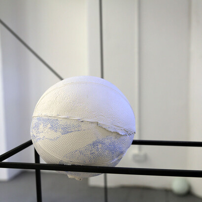 - Emily Hawes, Basket ball, plaster and steel, 2014