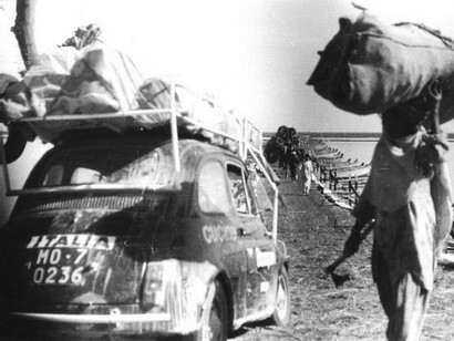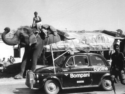 Appena qualche decade fa partivamo dal Bar Grand’Italia di Modena a bordo di una Fiat 500 (del ’60) diretti all’isola di Bali, in Indonesia. Era l’11 giugno 1969. L’equipaggio era composto da Adriano Malavasi, Paolo Fiorani e dal sottoscritto, tutti ventenni. Completammo il viaggio di 50.000 chilometri in 6 mesi esatti: la vecchia e ormai squinternata 500 entrò nuovamente a Modena la sera dell’11 dicembre, spense il motore e fu per sempre, non ripartì mai più. Aveva portato a termine l’ultimo glorioso atto della sua generosa esistenza, che l’aveva vista percorrere le strade di Jugoslavia, Bulgaria, Turchia, Iran (mar Caspio e deserto del nord), Afganistan, Pakistan, India, Nepal e Bengala. Lasciata nel garage del Console italiano a Calcutta, semplicemente per la mancanza di vie di comunicazione percorribili in auto, noi tre continuammo con mezzi di fortuna alla volta di Birmania, Tailandia, Malaysia, Singapore, Sumatra, Giava e Bali, con capolinea a Dempasar. Nel ritorno, dopo Vietnam, Cambogia, Tailandia e nuovamente in India con l’auto, percorremmo la via che attraversa il sud del Pakistan (Wiziristan), l’Iran meridionale, Iraq, Giordania, Libano, Siria, Turchia, Grecia, Jugoslavia, (via Macedonia, Kosovo, Montenegro, Croazia e Slovenia) fino a giungere in Italia again, dove la stradale ci accolse con una multa salatissima per la struttura anomala del mezzo, giudicata “irregolare”. Nell’ultimo tratto rimanemmo 6 giorni senza dormire, da Amman a Modena, costretti a spingere continuamente la macchina nella neve, senza più le scarpe coi piedi fasciati da garze avvolte da calzini estivi. In pratica, eravamo nelle stesse condizioni della nostra autovettura. I problemi da risolvere lungo il tragitto furono tantissimi, anche economici, ma nessuno mise in forse lo spirito dell’impresa. Il pianale dell’auto era già marcito nel viaggio d’andata e sostituendo con canne di bambù da dove entrava abbondantemente acqua delle piogge monsoniche, la portiera di destra era stata legata col fil di ferro, perché ‘insaccatasi’ a causa di un dosso percorso troppo velocemente; il deflettore di destra, mandando in briciole da un camion indiano passato a pochi millimetri, era stato ricostruito in compensato; il blocco del sostegno motore si era spezzato ed era stato ricostruito artigianalmente, a colpi di lima, da volenterosi meccanici di Calcutta; la rottura della balestra anteriore infine ci obbligò a camminare per trenta chilometri nel deserto, dove fummo arrestati dai soldati iracheni per sospetto spionaggio, e tanti altri inconvenienti di ogni genere, quasi quotidiani. Poi ci furono le infezioni, la quarantena sull’isola di St. John, le coliche di reni nel deserto, i tentativi di rapina, i predoni, le feroci liti sui prezzi, al guerra del Vietam e le bombe in Cisgiordania, ma soprattutto i pericolosi equivoci dettati dall’inesperienza, che ci fecero rischiare più volte la vita e persino un linciaggio. Un automobile tanto piccola, mai vista prima, stimolava spesso la curiosità e l’ilarità degli indigeni: in Iran, al nostro passaggio si divertivano nel bersagliarci con sassi ed è capitato che una marea di gente sollevasse la macchina con noi dentro e ci buttasse nel fosso, così per ridere! La polizia è intervenuta più volte a randellare la nostra difesa. Tuttavia, le cose più belle, l’ospitalità della gente comune e gli amori di quei sei mesi intensi ci ripagarono abbondantemente delle fatiche del viaggio. Bisogna tenere presente che gli anni sessanta erano un “altro mondo”, spesso le piste camionabili sostituivano l’asfalto ed anche il viaggiare attraverso continenti lontani non era così comune e facile come oggi, ma riservato a pochissimi temerari. Gli italiani in giro per il mondo erano rari, anzi in molti Paesi non ne avevano visto uno, Tailandia compresa. Col passaporto si accedeva ad un numero ristretto di nazioni; solo pochi anni prima occorreva il visto anche per la Svizzera ed era abbastanza normale viaggiare senza il supporto di una macchina fotografica. Fortunatamente avevo con me una vecchia Zenit a caricamento verticale, senza la quale, non ci sarebbe oggi alcuna immagine del viaggio.