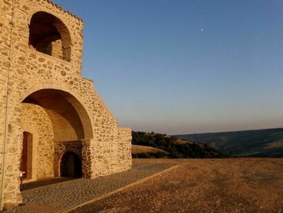 Dopo aver attraversato i vigneti del Vulture e gustato il vino Aglianico, anche direttamente dalle Cantine lungo la strada, si è fatto rotta nell'accogliente agriturismo "La Bufalara", dove Edda ci ha accolti nella sua masseria che domina la valle del Bradano. La cucina ( gustoso è il sapore del suo pane cotto: pane raffermo annaffiato da brodo preparato con porri e peperoncino, uova e prezzemolo), l’accoglienza e il vino Aglianico sono stati come sempre (non per niente è la quarta volta che passo in bicicletta da quelle parti!) eccezionali …La visita, questa volta a piedi al tramonto, del Santuario medioevale di S. Antonio Abate ci ha riempito gli occhi di tenui colori.