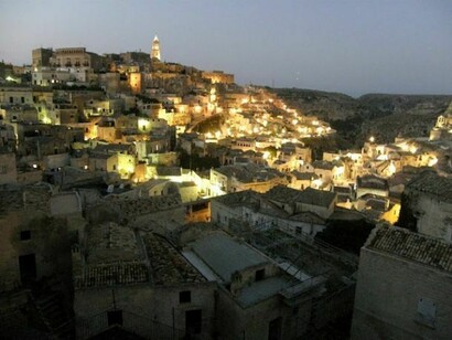 Il quarto giorno, dopo aver costeggiato il lago di San Giuliano in una splendida strada deserta, che sembra fatta apposta per pedalare, e esserci fermati a visitare la cripta del Peccato Originale, da molti considerata la Cappella Sistina degli insediamenti rupestri, siamo arrivati a Matera. La vista dei Sassi ci ha fatto passare immediatamente la stanchezza della pedalata. Alloggio nel B&B “La Dolce Vita “ che si trova nel sasso Caveoso. Aperitivo in piazza Sedile, cena in piazza Ridola, dove abbiamo degustato il Matera Rosso e terminato con il pasch'nisch (dolce settembrino preparato con semolino e mosto d'uva).
