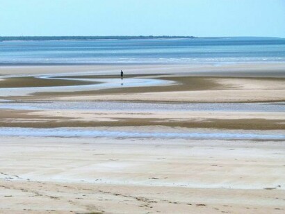 E’ tardo pomeriggio e col camper cerchiamo comunque la posizione più idonea a bordo spiaggia, per scattare alcune foto che ne esaltino il paesaggio. Dopo la breve sosta Liz ingrana la retromarcia e il fondo che pareva ben solido si apre di colpo, con le ruote che sprofondano in una polvere di sabbia fine come talco. Proviamo con pala e legni sotto i pneumatici ma niente da fare. In aggiunta, scopriamo di essere finiti sul suolo dei nativi Wagait per le urla di un aborigeno ubriaco che minaccia di spararci: “I kill you!”. Ma poi, piano, piano, diventiamo quasi amici. Telefoniamo al soccorso stradale, essendo però venerdì sera e il luogo sperduto, ci chiedono duemila dollari. Rifiutiamo rimandando il problema all’indomani, rassegnati a passare la notte al margine della spiaggia, nella speranza che non piova o ancor peggio non capiti una di quelle predette alte maree che potrebbe raggiungere il camper. Per l’agognato caffè in spiaggia facciamo girare una potente torcia che identifica da lontano i coccodrilli, grazie al particolare riflesso dei loro occhi. All’alba lungo la strada fermiamo un gippone guidato da Mark, il quale accetta di aiutarci sotto compenso. Prova a trainarci ma si piega pure la barra del suo mezzo, quindi torna con trattore, pala, asce, fune e per 500 dollari ci sbroglia da quella “fottutissima” situazione. A onor del vero ne aveva chiesti 100, ma quando Liz si è fatta sfuggire che gli altri ne volevano 2000, il prezzo in automatico è lievitato.