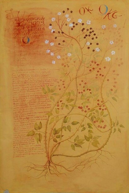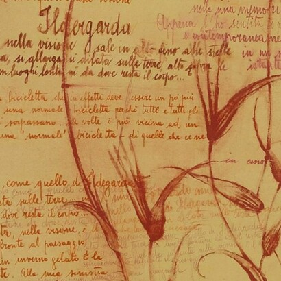 Ci sono relazioni che si muovono liberamente anche fuori dal tempo. La mia compagna di viaggio, nel rischio e nella visione, è la badessa Ildegarda di Bingen vissuta nel dodicesimo secolo. Ho incontrato la sua opera nel 1993. Non tutta l’opera d’un colpo, naturalmente. Mi è stata sufficiente la sua immagine dell’uomo al centro dell’universo, realizzata circa trecento anni prima di quella di Leonardo da Vinci, per ricevere quel contraccolpo che richiede sempre il tentativo di una risposta. Sono andata in libreria e ho comperato tutti i libri che parlano della sua vita, delle sue opere e delle sue erbe medicinali. Ritrovo in lei una fonte inesauribile di suoni, di echi, di richiami che mirano a una verità che si trova al di là della contingenza spazio-temporale. Ho accolto la sua vita e le sue parole e questo incontro/confronto lascia nelle mie giornate un segno profondo. Mi è diventata necessaria. Ho iniziato così a vivere e a lavorare con lei. Le sue idee sull’essere, sul divino, sulla natura, sulla ragione, sulla bellezza sono rese con potente immaginazione poetica e sono governate da un pensiero filosofico libero e lontano dalle scuole dell’epoca. C’è poi l’amore per il corpo. Il corpo, “il microcosmo”, suscita in lei un interesse pari a quello che prova per l’animo umano. Non c’è separatezza. Per la salute del corpo, nel suo insegnamento ci sono filosofia, scienza, poesia, musica, danza, cibo, armonia con il macrocosmo, cura con le erbe.