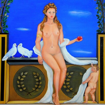 Ecco, allora, che alcune divinità vengono rappresentate secondo distintivi e caratterizzanti elementi appartenenti al mito classico talora rielaborate dall’artista in chiave contemporanea, mentre concetti come profonde trasformazioni che possono occorrere nelle nostre vite sono raffigurate attraverso eloquenti simboli naturali e soprannaturali.
