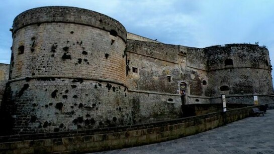 Il quarto giorno da Santa Maria di Leuca siamo risaliti verso nord lungo la costa Adriatica, completamente diversa da quella Jonica, perché ricca di calette e insenature: il Ciolo, una profonda gravina che da Gagliano del Capo giunge in mare formando una piccola caletta di ciottoli, Santa Cesarea Terme, la Grotta della Zinzulusa e la splendida caletta di Porto Badisco, e abbiamo raggiunto, seguendo il percorso costiero sotto un'incessante e non calda pioggia, Otranto. Otranto - antica Hydruntum, prima colonia magno-greca poi municipium romano - suggestivo centro con le mura, il castello aragonese e il misterioso mosaico (il più grande del mondo) nella Cattedrale romanica, ha da sempre costituito un ponte naturale tra Oriente e Occidente, un crocevia di popoli, un coacervo di culture.