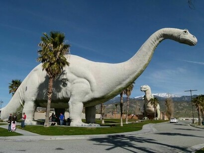 All’alba del quarto giorno di viaggio esco dalla parte nord del parco e attraverso la Yucca Valley sulla Hwy 62, accompagnato dalla magica visione del sole che proietta al suolo le ombre allungate di migliaia d’alberi “Giosuè” con le “braccia” alzate, da sembrare un mistico saluto. Costeggio poi la selva di pale a vento sulla Interstate 10 West che in breve mi conduce al Museo dei Dinosauri, non distante dalla famosa casa gialla di Hadley, l’unico luogo in America dove servono i Date Shake (frullati di dattero), squisiti. Riprendo la 10 verso East, poi la 111 ed entro a Palm Springs, altrimenti nota come Snow Bird, poiché grazie al clima temperato per molti attori e personaggi influenti è diventata la residenza invernale: “come uccelli che migrano dal freddo”. Città curatissima e lungo la via è tutto un défilé di mega ville tirate a lucido. Supero la Frank Sinatra Drive e nell’esclusiva frazione di Rancho Mirage ordino una succosa braciola al Babe’s Restaurant, indicato dalle sculture in bronzo di maiali giganti, col laghetto annesso alla Cheesecake Factory. A Palm Desert imbocco la Hwy 74 che attraversa la riserva montana di San Jacinto e mi porta fino al parcheggio di Dana Point, al margine di una bella spiaggia invasa da migliaia di gabbiani. Procedendo lungo la Interstate 5 South e la litoranea, dedico il giorno seguente ad analizzare una a una le località balneari lungo la costa, da Laguna Beach, caposaldo della Lesbian Community, a La Jolla, col suo monumentale Mormon Temple.