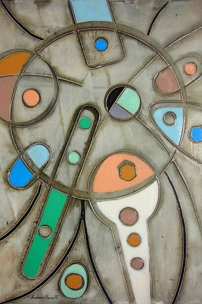 Andrea Benetti, che da molti anni esprime col favore di critica e pubblico le proprie idee e la propria pittura nell’ambito dell’arte contemporanea, presenterà la sua ricerca sulle qualità simboliche e astratte della pittura neorupestre. Nei suoi quadri, trattati spesso in modo da simbolizzare al massimo la vicinanza ai dipinti delle caverne preistoriche, ma elaboranti e raggianti di colori ad olio, si ritrovano forme ed oggetti che riportano ad un passato antico, oltre che ad un futuro ipertecnologico. Benetti ha esposto in molti luoghi di grande prestigio ed è presente con le proprie opere all'interno di importanti Musei e Collezioni Internazionali (ONU, Vaticano, Quirinale, Camera dei Deputati, ecc.).