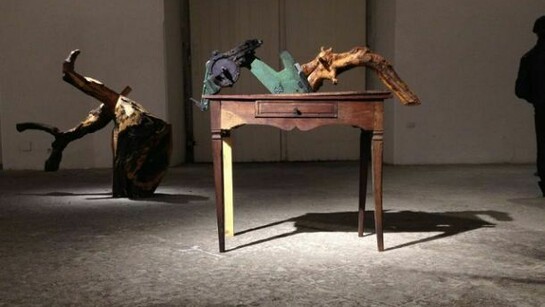 Artista, saggista, poeta e attivista politico, dagli anni ’70 Jimmie Durham decostruisce i concetti cardine della cultura europea lasciando all’essenza stessa dell’oggetto la capacità di raccontare la sua storia. I principi di monumentalità celebrativa, permanenza e universalità di architettura e scultura, considerata per secoli un mezzo per affermare l’identità di un popolo e della sua cultura, vengono rifiutati dall’artista per liberare l’oggetto dalla volontà dell’uomo di controllarne la natura. Il Teatro Margherita diviene così uno spazio contemplativo in cui differenti sculture in legno, insieme a massi di pietra lavica e frammenti di metallo industriale, tendono a ricreare un ambiente surreale.