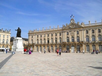 La piazza è costeggiata da una splendida schiera di monumenti decorati in ferro battuto, ornata da balconate e cancellate in ottone, che sono gli elementi caratteristici della città. Una piazza barocca, sontuosa, ma equilibrata nelle dimensioni. Colpisce per il bianco abbacinante della pavimentazione che risplende anche la sera! L’Hotel de Ville (Municipio), il Museo delle Belle Arti, la Fontana di Nettuno, l’Arco di Trionfo e i numerosi e raffinati ristoranti, sono alcuni dei dettagli che non si possono trascurare guardandosi attorno dal centro della piazza. Da una delle tante aperture, che danno sulla piazza, si raggiunge poi il Parco della Pépinière, abbellito da un rigoglioso e caratteristico giardino all’inglese, e poco lontano ci si imbatte nella imponente Basilica di Saint Epvre. Vale poi la pena di lasciarsi trasportare dall’atmosfera spensierata e allegra della bella Rue des Marchéaux, preparandosi a scorrere di fronte ad alcuni dei migliori esempi di Art Nouveau della città.