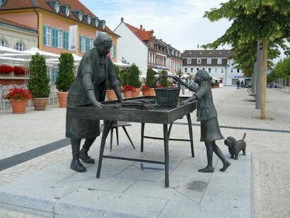 Da Bruchsal parto in direzione nord verso Heidelberg sulla strada forestale e percorso ciclistico, che unisce Schwarzwald al Bodensee (lago di Costanza!). Sulla Forster Strasse in breve raggiungo la cittadina di Forst e poi entro nel vicino parco. La pista è la Odenwald Radweg (che seguirò fino a dopo Eberbach) in direzione St. Leon, e adesso piove. Mi riparo sotto l’androne di una casa e aspetto che smetta un po’, intanto mangio un panino. Poi proseguo attraversando un bel parco. Un'altra piccola sosta sotto un capanno di legno, da dove, a un tratto, sento in distanza un rumore assordante di automobili. La Formula 1 a Hockenheim! Controllo sul GPS. Sì, sono a soli tre chilometri in linea d’aria e questo è il sabato delle prove cronometrate! Mi fermo a Schwetzingen per visitare il suo castello, ma il suo parco è chiuso per restauri. Tutto intorno nelle campagne le coltivazioni sono di tabacco, ma soprattuto di asparagi. Tanto che a Schwetzingen in piazza c’è un monumento che riproduce una venditrice degli ortaggi con il suo carretto. Soprattutto in estate, non vi è struttura gastronomica che non offra un menu speciale a base di asparagi con creazioni fantasiose di questo ortaggio.