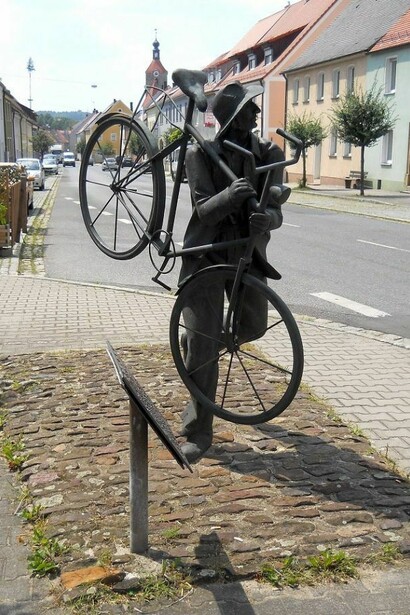 Giornata tersa senza una nube e il termometro all’esterno che segna già 18°C! Questa mattina la direzione è verso Neustadt an der Waldnaab, il più piccolo capoluogo di contea in Baviera. Fuori città, tra numerosi centri sportivi e grandi parchi pubblici, incrocio molti ciclisti. Milioni di ciclisti! In breve, da Neustadt Waldnaab, inizio a percorrere la pista “Böckl-Radweg”, la più lunga e bella della Baviera. Nel suo tracciato seguo il corso della vecchia linea ferroviaria che mi guida, con il suo percorso adesso pianeggiante, attraverso le colline della Foresta dell'Alto Palatinato. A Störnstein, da lontano, scorgo la chiesa di San Salvatore, arroccata su una roccia. Questa città è strana! Qui, a Störnstein ci sono i campioni del mondo di rotolamento dei barili di birra!!! Infatti ogni anno viene organizzata una competizione dove i concorrenti devono far rotolare i propri barili su una strada cittadina, guidandoli con dei lunghi bastoni.